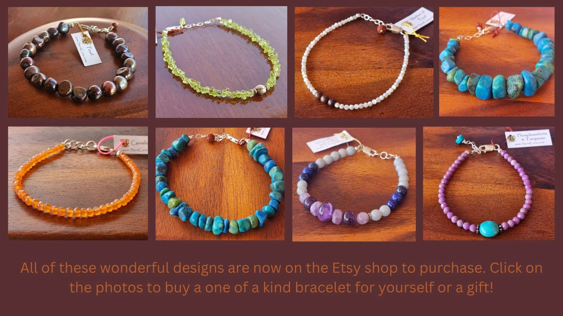 Well aren’t these just amazing?? If you want to buy any of these, visit our Etsy shop. We can create a custom made piece, bracelet or anklet, just for you, so if you can’t see one that suits you or if you are in need of a specific gemstones in your life, please contact Sarah through the Contact page.